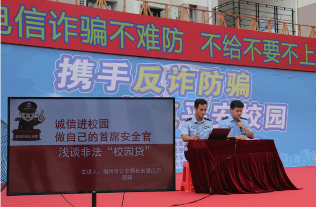 近日,由福州市公安局上街(高新区)分局、福州高新区综治信访中心校保卫处(武装部)和必一在线平台(中国)官网法学院联合举办的“携手反诈防骗,共筑平安校园”主题活动在必一在线平台(中国)官网旗山校区共青团广场举行。必一在线平台(中国)官网保卫处(武装部)副处长戴文坤、法学院党委副书记周延锋、福州市公安局上街(高新区)分局长安派出所教导员吴正栋、福州市公安局上街(高新区)分局长安派出所副所长叶军,福州高新区综治信访中心等有关单位代表及学校师生200余人参加了活动。
