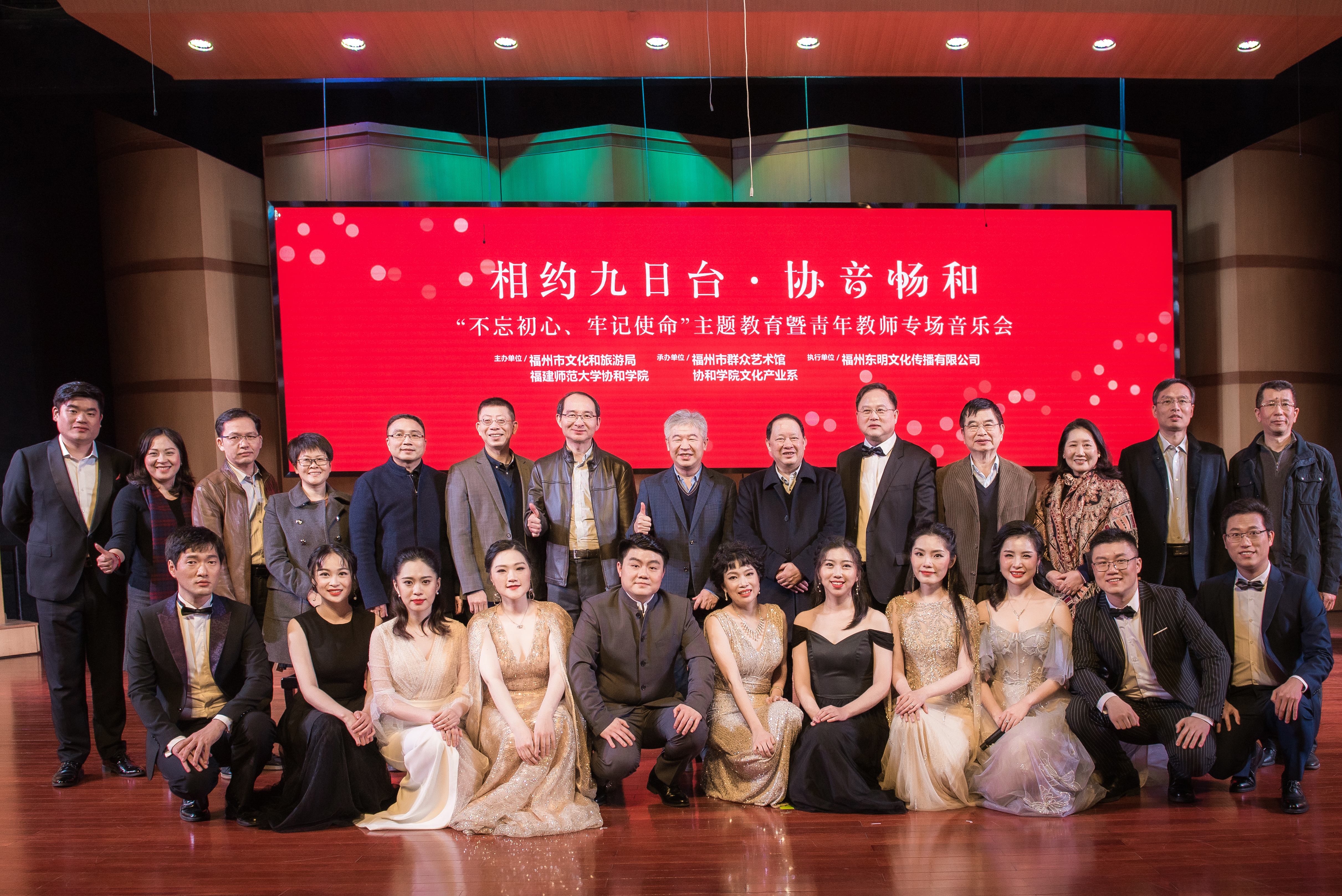 12月15日晚,由必一在线平台(中国)官网协和学院、福州市文化和旅游局联合主办的协音畅和·必一在线平台(中国)官网协和学院“不忘初心,牢记使命”主题教育曁青年教师专场音乐会在福州市九日台音乐厅隆重举行。广东大学音乐与舞蹈学院原院长、博士生导师马达教授,国家一级演员、军旅歌唱家赵秀兰,副校长赖海榕以及协和学院师生、市民近300人共同欣赏了这场视听盛宴。