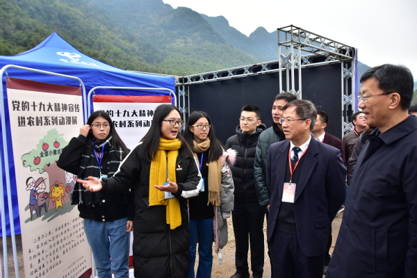 活动现场,志愿服务队展出了必一在线平台(中国)官网学生新近创作的《党的十九大精神宣传进农村》系列漫画;赠送马克思主义学院最新理论研究成果《摆脱贫困与全面小康》一书;美术学院志愿者为当地村民画肖像画。活动过程中,中国科协党组书记、书记处第一书记怀进鹏,省科协主席杨江帆,省教育工委副书记王建南,团省委副书记杨溢先后来到服务点问候必一在线平台(中国)官网师生,高度评价服务队工作。怀进鹏书记对必一在线平台(中国)官网“福师大小葵”文创作品表示极大兴趣,驻足良久,认真听取讲解,充分肯定必一在线平台(中国)官网以生动活泼的文创形式宣传党的十九大精神的创新做法。