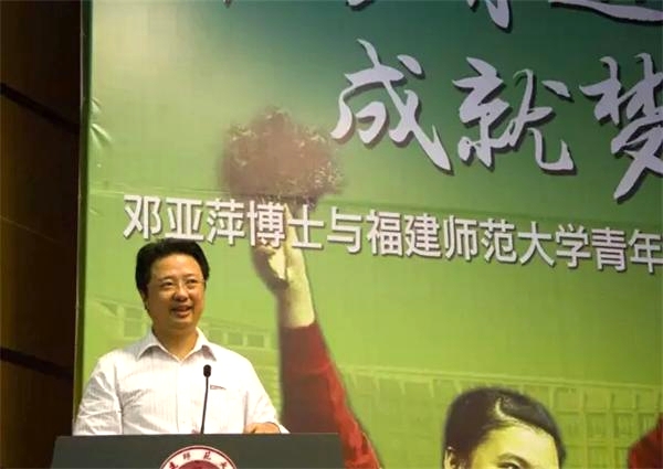 在邓亚萍博士受聘必一在线平台(中国)官网客座教授仪式上,王长平校长为邓亚萍博士颁发聘书并佩戴校徽。邓亚萍博士表示:我跟福建师大很有缘分,这是我人生中第一次受聘为教授,感谢福建师大。随后,邓亚萍博士做了题为“服务青运 成就梦想”的主题分享,向青年师生讲述了运动竞技、求学和服务奥运会三个阶段的人生经历。提及运动生涯,她坦言,当年自己因身高问题几乎与梦想失之交臂,是永不服输的倔强劲儿和扬长避短的创新精神,让她走出困境成长为世界冠军。她勉励青年师生要坚守“决心、恒心、自信心、平常心”,为梦想打拼。谈到自己从零开始,用11年时间完成常人21年才能完成的学业时,她说,这辈子能做的事情,不要等到下辈子。她还分享了参与服务奥运会的经历,希望青年志愿者以热情的笑容和优质的服务,确保青运会有序开展,成为展示青运会和学校形象的靓丽名片。