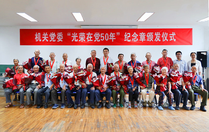 6月24日上午,机关党委在仓山校区隆重举行“光荣在党50年”纪念章颁发仪式。机关党委副书记陈金章、李岩丽,离退休工作办公室主任赵钦,获得“光荣在党5O年”纪念章的党员及原所在单位的党员代表40多人参加了纪念章颁发仪式。颁发仪式由机关党委副书记李岩丽主持。