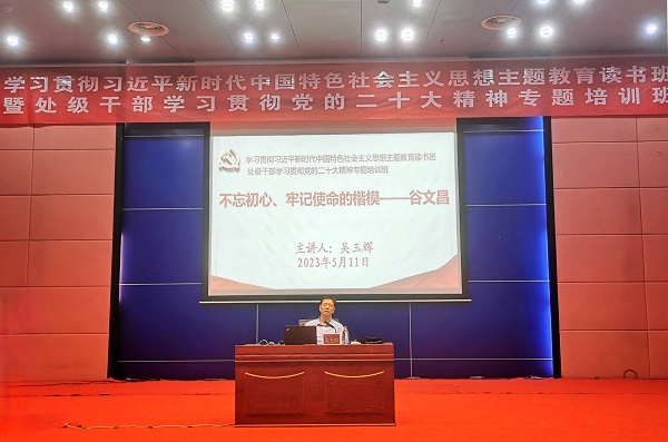 吴玉辉从“不忘初心、牢记使命”的视角,通过“从植树造林看谷文昌的一心为民”“从‘兵灾家属’看谷文昌的实事求是”“从特殊年代看谷文昌的勇于担当”“从红色家风看谷文昌的人格力量”“从时代视角看谷文昌的鲜明品格”五个方面,讲述了谷文昌如何为官一任,造福一方,不畏艰苦,实事求是,带领东山人民苦干14年,把一个荒岛变成宝岛,如何用自己的言行赢得东山老百姓的信任和敬仰,如何以实际行动诠释一名共产党员的初心和使命,生动阐释了“坚定不移的理想信念、一心为民的公仆情怀、求真务实的担当精神、艰苦奋斗的优良作风”的谷文昌精神,为读书班学员上了一堂精彩生动、富有感染力的党课,让读书班学员深受教育、深受启发、深受鼓舞。