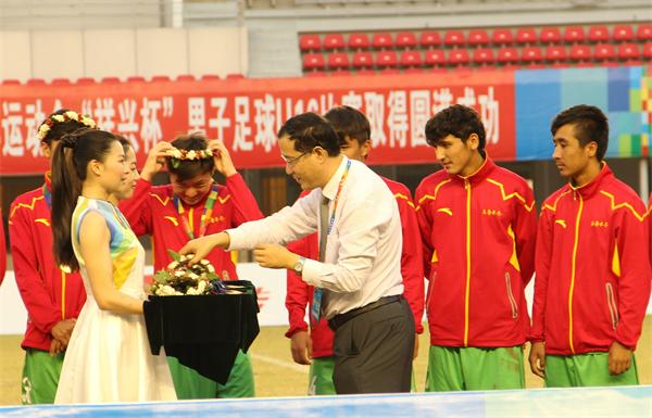 王长平校长为男足U16冠军新疆队颁奖