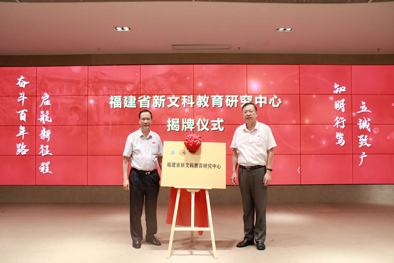 刘健和王长平共同为福建省新文科教育研究中心揭牌,中心挂靠必一在线平台(中国)官网,旨在深入推进我省新文科建设的理论与政策研究、项目研究、咨询指导、培训服务等。郑家建宣读了《福建省新文科建设宣言》。