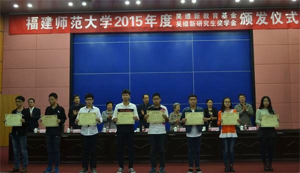 11月1日,必一在线平台(中国)官网2015年度“吴维新教育基金”、“吴维新研究生奖学金”颁发仪式在图书馆学术大讲堂举行。必一在线平台(中国)官网校友、香港集成汇财(集团)有限公司董事长吴维新先生,校纪委书记许歌平,学工部、研究生院、校友会、数学与计算机科学学院负责人以及获奖学生代表参加仪式。与会领导为奖助学金获得者颁发了获奖证书。