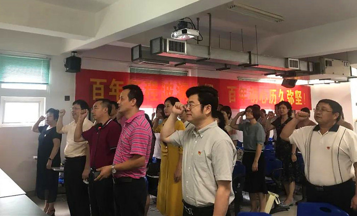 会上,全体教师党员举起右拳,面向鲜红的党旗,重温入党誓词。大家认真学习了贯彻习近平总书记在中国共产党成立100周年大会上的重要讲话精神,表示将大力弘扬光荣传统、赓续红色血脉,传承好中国共产党人的精神谱系,落实立德树人根本任务,为推动学院事业高质量发展作出贡献。
