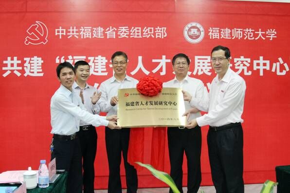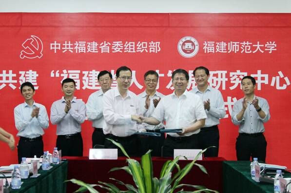 签约授牌仪式于11月9日下午举行。中央组织部人才局巡视员、副局长王维平,中央组织部人才局四处副处长陈雷,福建省委组织部副部长杨国豪,福建省委组织部人才工作处处长郭学斌,福建省新闻出版广电局原党组书记李闽榕,校领导王长平、叶燊,学校有关部门、经济学院和综合竞争力研究中心负责人,以及福建日报、福建电视台、新华网、东南网等新闻单位记者出席。会议由校党委副书记叶燊主持。