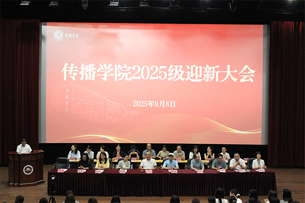 9月8日下午,传播学院2025级迎新大会在星雨剧场举行。院党政工领导、各系主任、专业负责人、科级干部、教师代表、辅导员、校友代表以及全体2025级本科生、研究生参会。