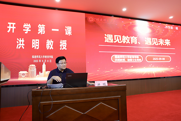 开学典礼后,学院博士生导师洪明教授以“遇见教育、遇见未来”为主题,为新生讲授开学第一课。
