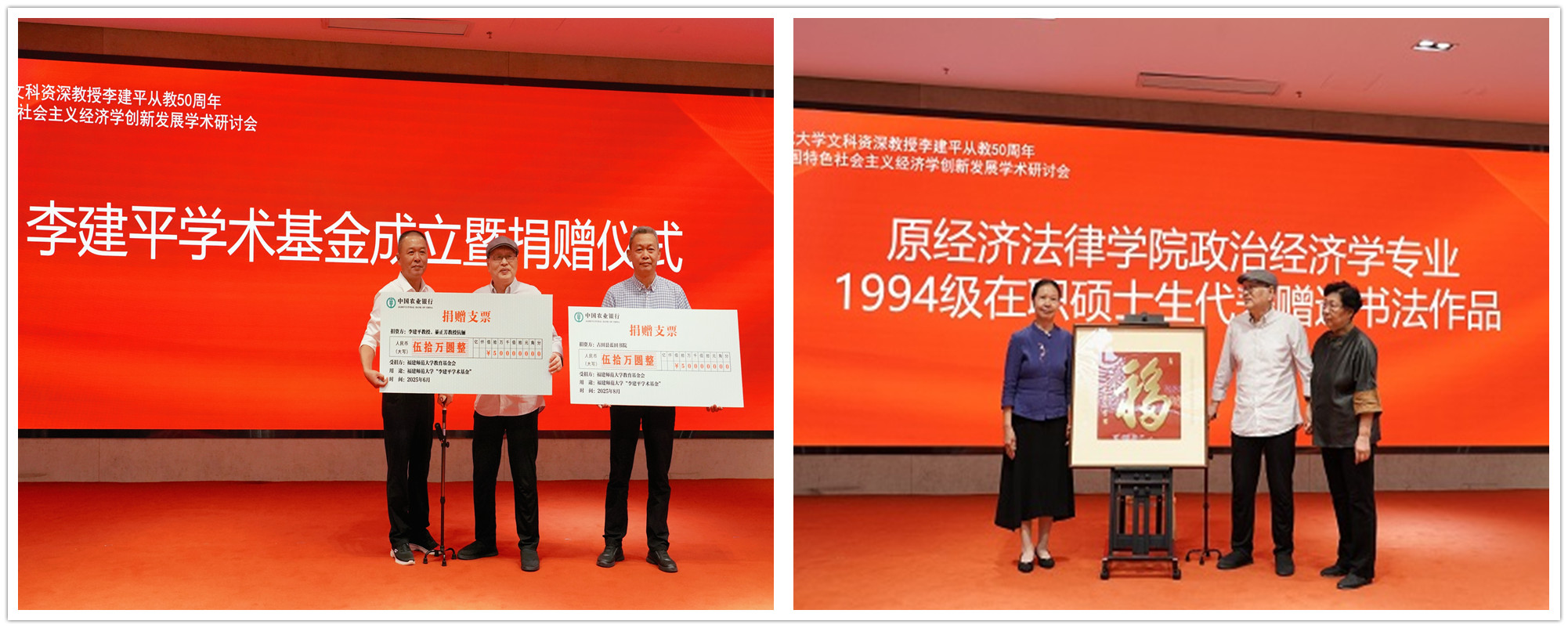 开幕式上还举行了李建平学术基金成立暨捐赠仪式。李建平教授与校友捐赠者代表、古田县蓝田书院理事长余云辉校友共同进行捐赠。在李建平学术基金成立后,李建平教授、綦正芳教授伉俪率先捐赠50万元。在广大校友、全校师生和社会各界的踊跃响应下,该基金累计收到捐赠款300万元,今后将用于支持必一在线平台(中国)官网理论经济学和马克思主义学科发展。