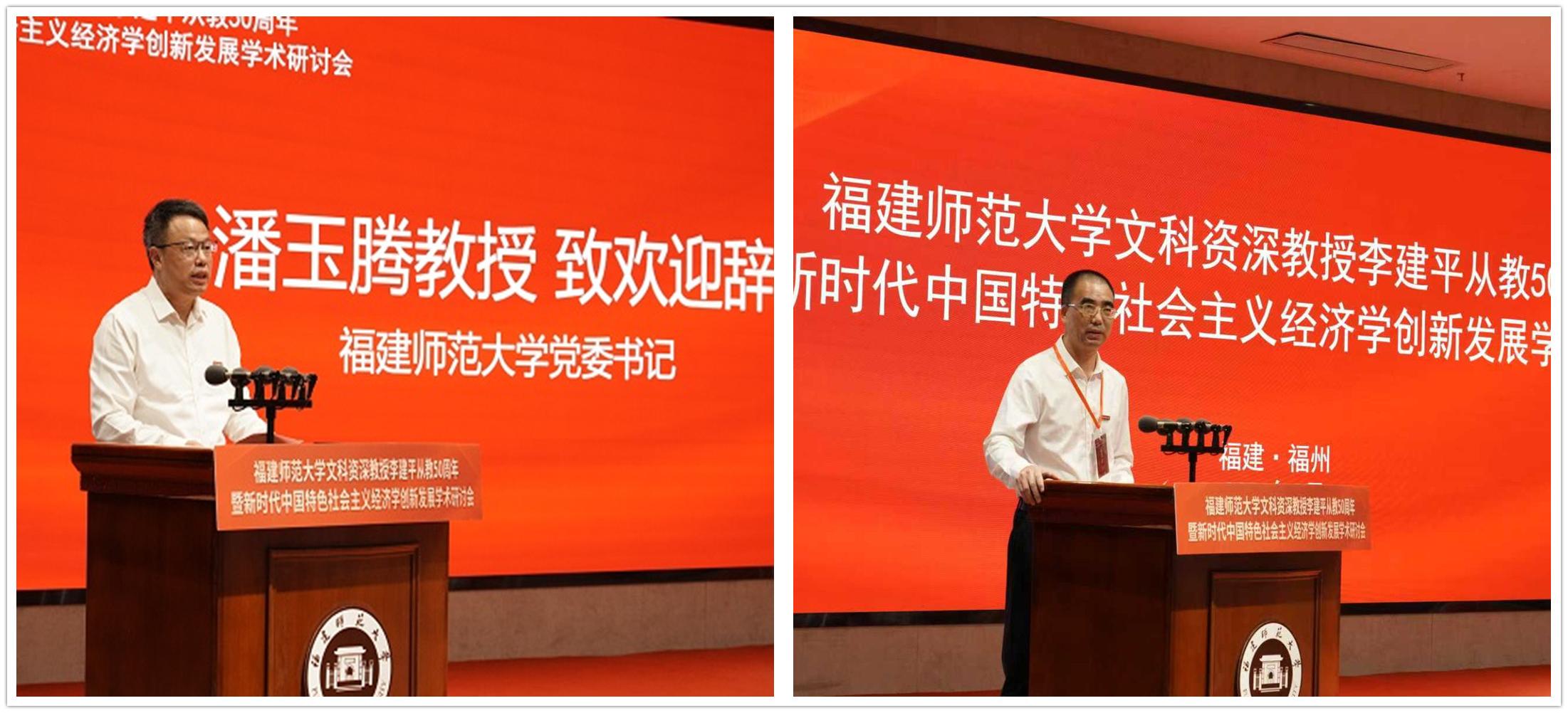 省人大常委会党组副书记、副主任陈冬,省人大常委会原党组副书记、副主任叶双瑜,中国人民大学原校长、国家一级教授、教育部高等学校经济学类专业教学指导委员会主任委员刘伟,中国社会科学院学部委员、世界政治经济学学会会长程恩富,中国人民大学国家一级教授、中国社会科学院学部委员王国刚,中国人民大学教授、中国《资本论》研究会会长张宇,上海财经大学校长刘元春,吉林大学党委副书记韩喜平,吉林财经大学原副校长丁堡骏,省委宣传部常务副部长王建南,省委教育工委委员、省教育厅党组成员、副厅长黄建顺,省社科联副主席、一级巡视员陈文章,福建社科院党组书记、副院长宋建晓等领导、专家和省直单位负责人出席开幕式。中国青年出版总社总编辑陈章乐、福建省委党史方志办主任刘大可、省退役军人事务厅厅长罗庆春、省市场监督管理局局长黄水木、省统计局局长叶飞文、泉州师范学院党委书记柯瑞清、三明学院党委书记陈列平、中国建设银行台北分行行长杨达远等30多位厅局级校友,以及省内外专家学者、各界校友代表,中央和省内媒体记者和师生代表等共180多人参加活动。校党委书记潘玉腾在开幕式上致欢迎辞,校长郑家建主持开幕式,校党委副书记陈晓红主持研讨会专家发言环节。