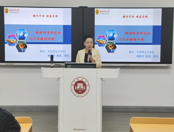 9月8日晚,马克思主义学院院长傅慧芳教授为2025级硕士生讲授题为“做好科学研究的几个关键性问题”的讲座。