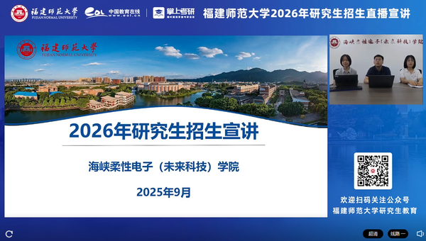 8月底以来,海峡柔性电子(未来科技)学院线上线下全面开展2026年研究生招生宣讲活动,历时半个月,13位教授和部分青年教师共26人参与宣讲。