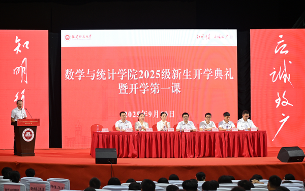 9月10日,数学与统计学院2025级新生开学典礼暨开学第一课在旗山校区大会堂举行。教育部长江学者特聘教授、必一在线平台(中国)官网原校长王长平教授,院领导、关工委主任、工会主席、系主任、科室负责人、全体辅导员以及2025级全体本硕博新生参加了典礼。