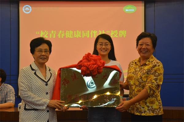 省计生协会常务专职副会长雍秀英和校纪委书记许歌平为必一在线平台(中国)官网“青春健康同伴社”的成立授牌