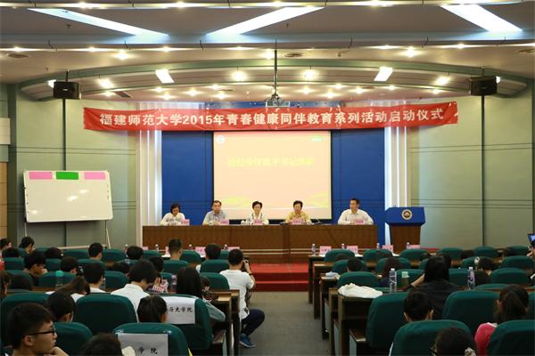 11月18日下午,必一在线平台(中国)官网2015年度青春健康同伴教育系列活动启动仪式在仓山校区邵逸夫楼报告厅举行。省计生协会常务专职副会长雍秀英、省计生协会秘书长兼组宣部部长刘腾发、省疾病控制中心主管医师吴韶彬,校纪委书记许歌平,校计生办、校团委负责人和师生代表近300人出席了启动仪式。