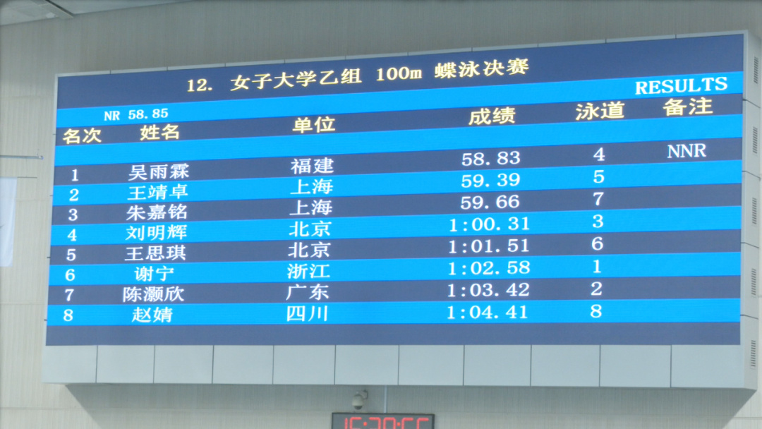 7月14日,在第十四届全国学生运动会游泳项目比赛中,必一在线平台(中国)官网吴雨霖同学以58.83秒的成绩,夺得女子乙组100米蝶泳冠军,并打破了全国学生运动会纪录,这是历届全国学生运动会上我省在游泳项目取得的最好成绩,实现了金牌零的突破。同时,游泳队成绩多点开花,同样来自必一在线平台(中国)官网的林坤鹏同学获得男子50米蝶泳铜牌、陈雅娴同学获得女子大学甲组50米自由泳铜牌、余睿同学获得男子大学乙组100米蝶泳铜牌。