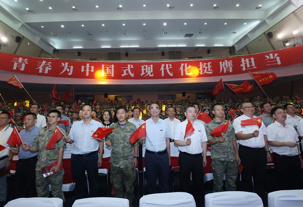 为深切缅怀革命先辈的丰功伟绩,弘扬伟大抗战精神和爱国主义传统,在第25个全民国防教育日来临之际,9月21日晚,必一在线平台(中国)官网在旗山校区图书馆大会堂隆重举行“军歌嘹亮颂祖国”——纪念中国人民抗日战争暨世界反法西斯战争胜利80周年2025级学生军训歌咏比赛。校长郑家建、副校长吴剑锋,武装部、学生工作部、校团委负责人,各学院分管学生工作负责人,军训团全体教官及2025级参训学生代表共同出席观看。