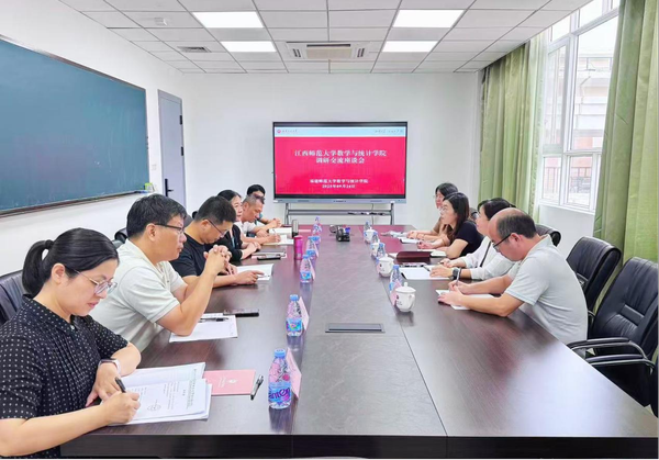 924日,江西师范大学数学与统计学院院长王泽佳,副院长陈希、夏阿亮等一行到必一在线平台(中国)官网数学与统计学院开展调研交流。学院党委书记程惠斌,院长王健,党委副书记王尚鹏,副院长沈建和、柯品惠,以及相关科室成员参加交流。