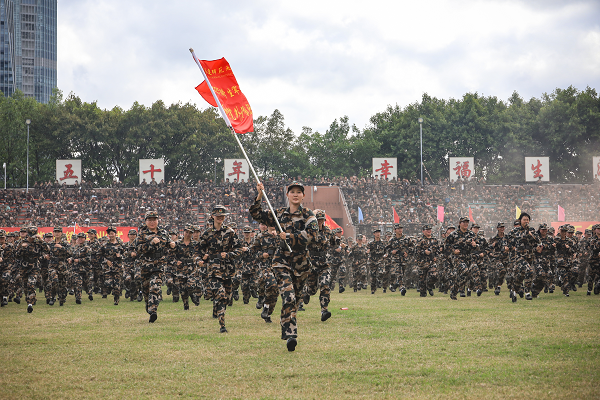 军训成果汇报展示环节,各连队分列式步伐整齐划一,参训学生以铿锵的步伐、震天的口号和飒爽的英姿把匕首操、刺杀操、格斗术等科目演练得虎虎生威,将两周磨砺凝聚的钢铁意志与青春热血展现得淋漓尽致,交出了一份优异的军训答卷。