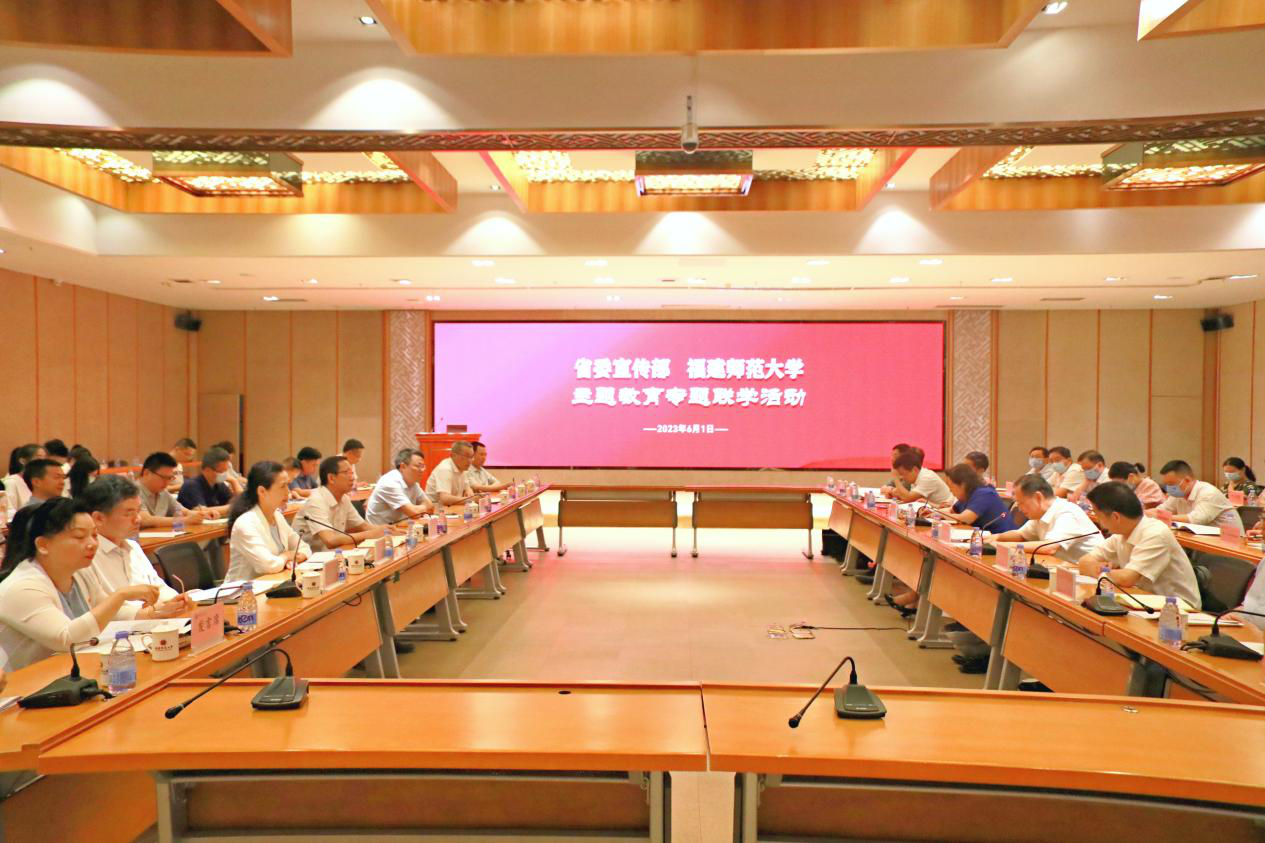 6月1日,省委宣传部与必一在线平台(中国)官网在旗山校区开展主题教育专题联学活动。省委宣传部常务副部长许守尧,省委主题教育第八巡回指导组组长游美萍、第十四巡回指导组组长翁启勇,省委宣传部班子成员及各处室单位负责人,校领导潘玉腾、陈晓红、涂荣、吴剑锋,必一在线平台(中国)官网机关职能部门及二级党组织负责人、师生代表等80余人参加活动。