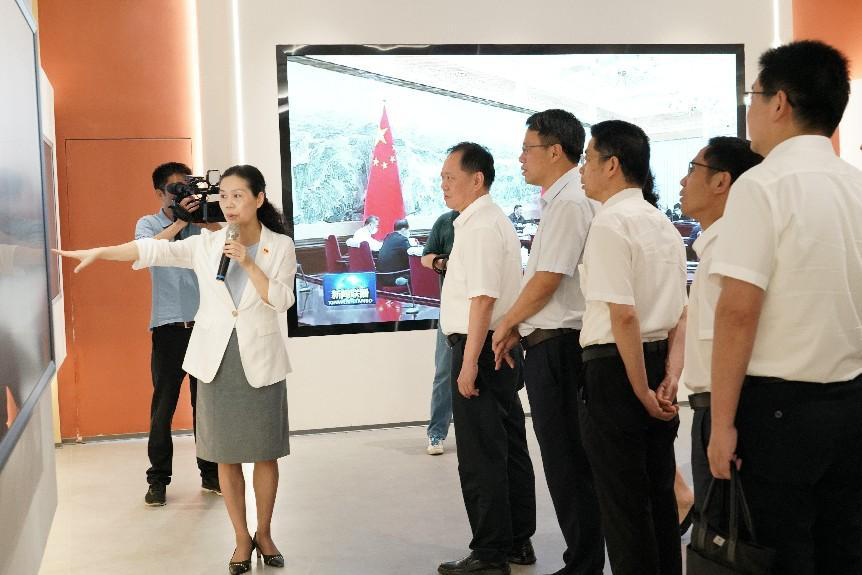 在现场教学环节,与会人员现场研学了新时代大学生社会大课堂实践中心“思想探源”“实践画卷”“实践体验”“聚合互动”“光辉指引”等方面内容,在沉浸式学习中深刻感悟习近平总书记关于高校思想政治工作、思想政治理论课建设和实践育人的系列重要论述,了解福建师大在新时代大学生思想政治教育方面的实践探索和丰硕成果。研学过程中,许守尧、潘玉腾还现场视频连线必一在线平台(中国)官网派往宁夏的研究生支教团,勉励他们发挥专业所长、扎根祖国大地,用美好的青春年华积极投身社会大课堂、服务社会实践第一线,为“闽宁合作”的“山海情”续写新篇章。