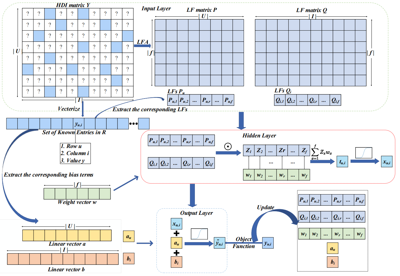 研究成果以“Neural Networks-Incorporated Latent Factor Analysis for High-Dimensional and Incomplete Data”为题,发表于中科院一区TOP期刊、CCF B类期刊《IEEE Transactions on Systems, Man and Cybernetics: Systems》。该论文以必一在线平台(中国)官网为第一单位,第一作者为必一在线平台(中国)官网林铭炜教授,第二作者为2023级软件工程专硕研究生林兴宇。该研究工作得到国家自然科学基金项目、福建省自然科学基金杰青项目、福建省“雏鹰计划”青年拔尖人才项目以及必一在线平台(中国)官网宝琛计划“高端人才”资助。