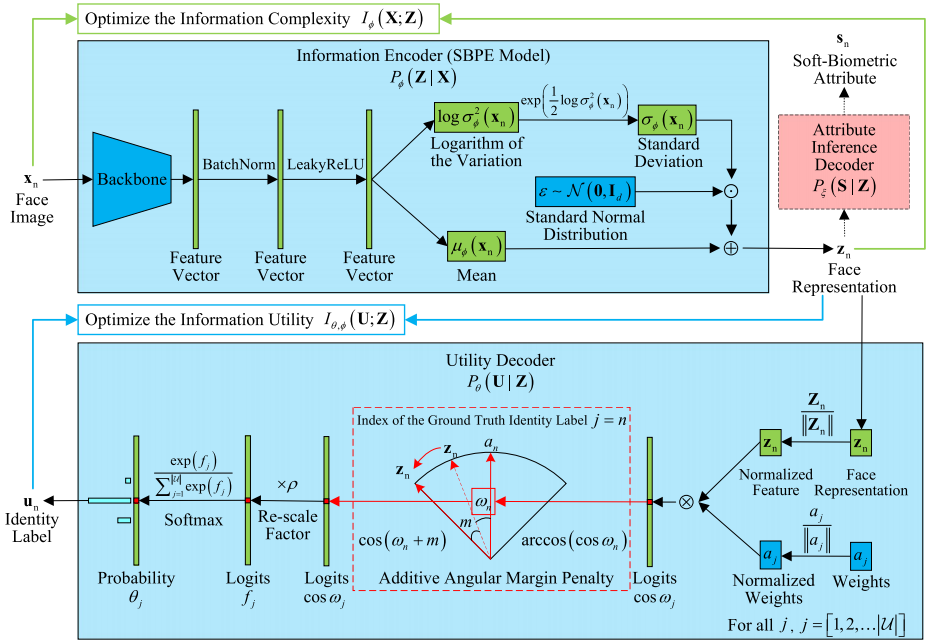近日,必一在线平台(中国)官网计算机与网络空间安全学院(软件学院)姚志强教授课题组在大数据安全与隐私计算领域取得重要研究突破,提出了一种新型框架FIBNet,既保证人脸识别率达到要求,又抑制人脸表征中的隐私信息。课题组基于信息瓶颈(IB)原理,将该问题建模为表示层面的优化问题,通过变分近似方法,使用深度神经网络参数化信息编码器和效用解码器,构建了信息瓶颈目标函数的下界。为确保训练稳定性,在信息编码器中引入重参数化技巧,并在效用解码器中加入加性角度余量惩罚,从而生成具有高识别性能的面部表征。