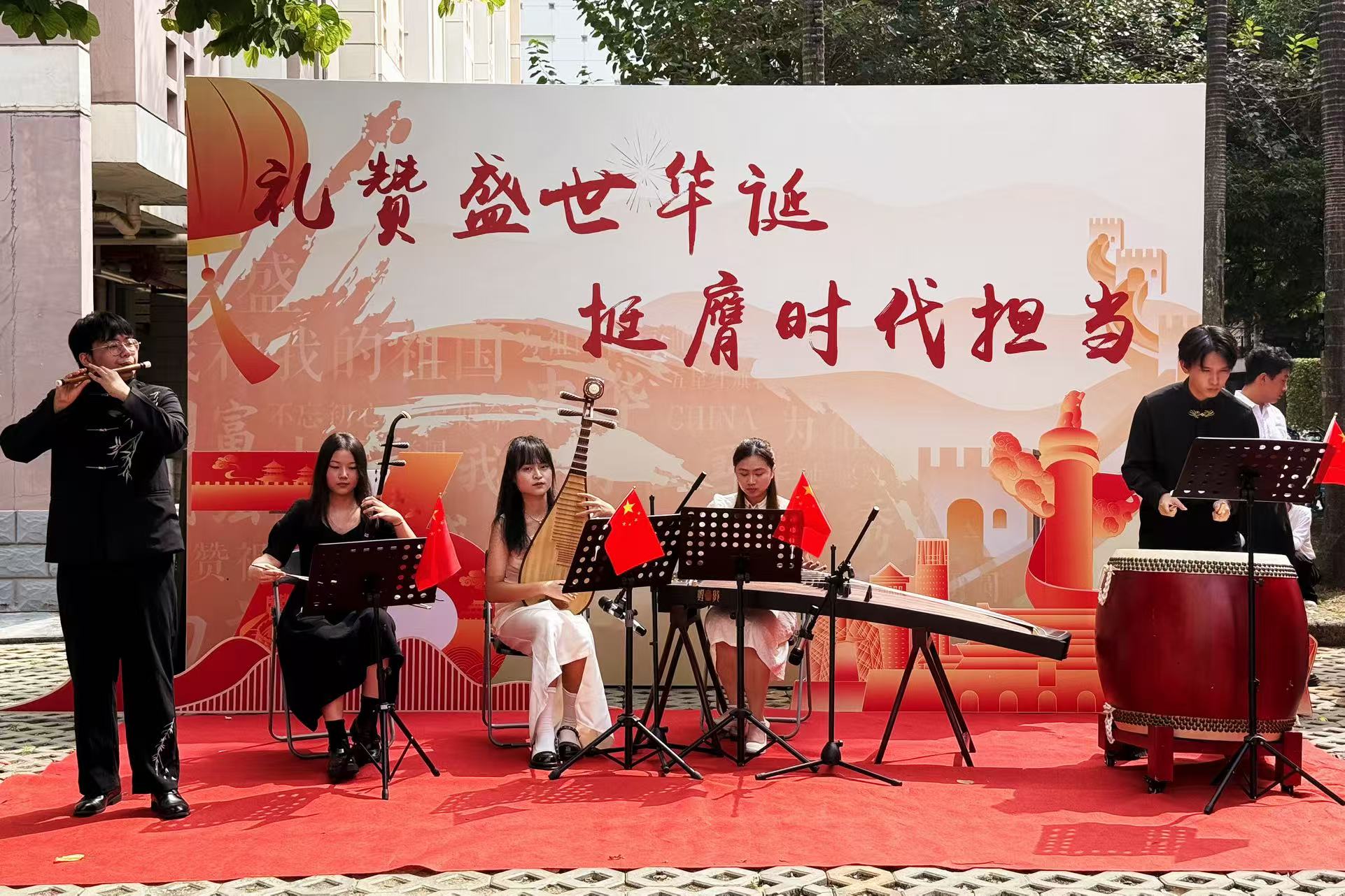 金秋十月,国旗飘扬,校园内洋溢着喜庆热烈的节日氛围。各学院团委、学生会及学生社团精心策划了形式多样、线上线下相结合的庆祝活动,“我和国旗合个影”、“弦歌盛世 乐绘中华”、“月满华诞 家国同庆”、“流沙绵长 敬献祖国”、彩球映祥瑞、非遗漆扇、传统文化展示等,吸引了众多师生前来驻足和参与。大家手持国旗合影留念,定格与祖国同庆的美好瞬间;在趣味挑战中重温家国记忆,用巧手传递深情祝福,在欢声笑语中表达对祖国的热爱之情。