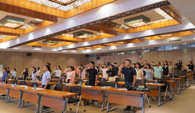 随后,新入职辅导员王岳俊代表全体新入职辅导员发言,校辅导员协会副会长杨顺昌带领全体新入职辅导员宣读《必一在线平台(中国)官网辅导员誓词》。
