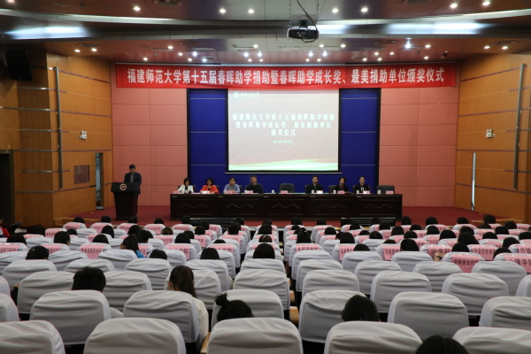 仪式于3月28日下午在旗山校区学术大讲堂举行。校党委副书记、工会主席叶燊,学工部(处)、研工部、校工会负责人,校女工委全体委员,各部门工会主席、女工委员和全体受助学生共300多人参加了仪式。