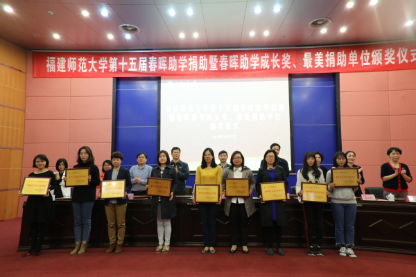 仪式上,29个长期为春晖助学活动捐助的单位获颁“春晖助学最美捐助单位”,23名曾获得“春晖助学金”资助且表现优异、成长显著的学生获颁“春晖助学成长奖”,177名贫困女大学生获得每人1000元的助学金。