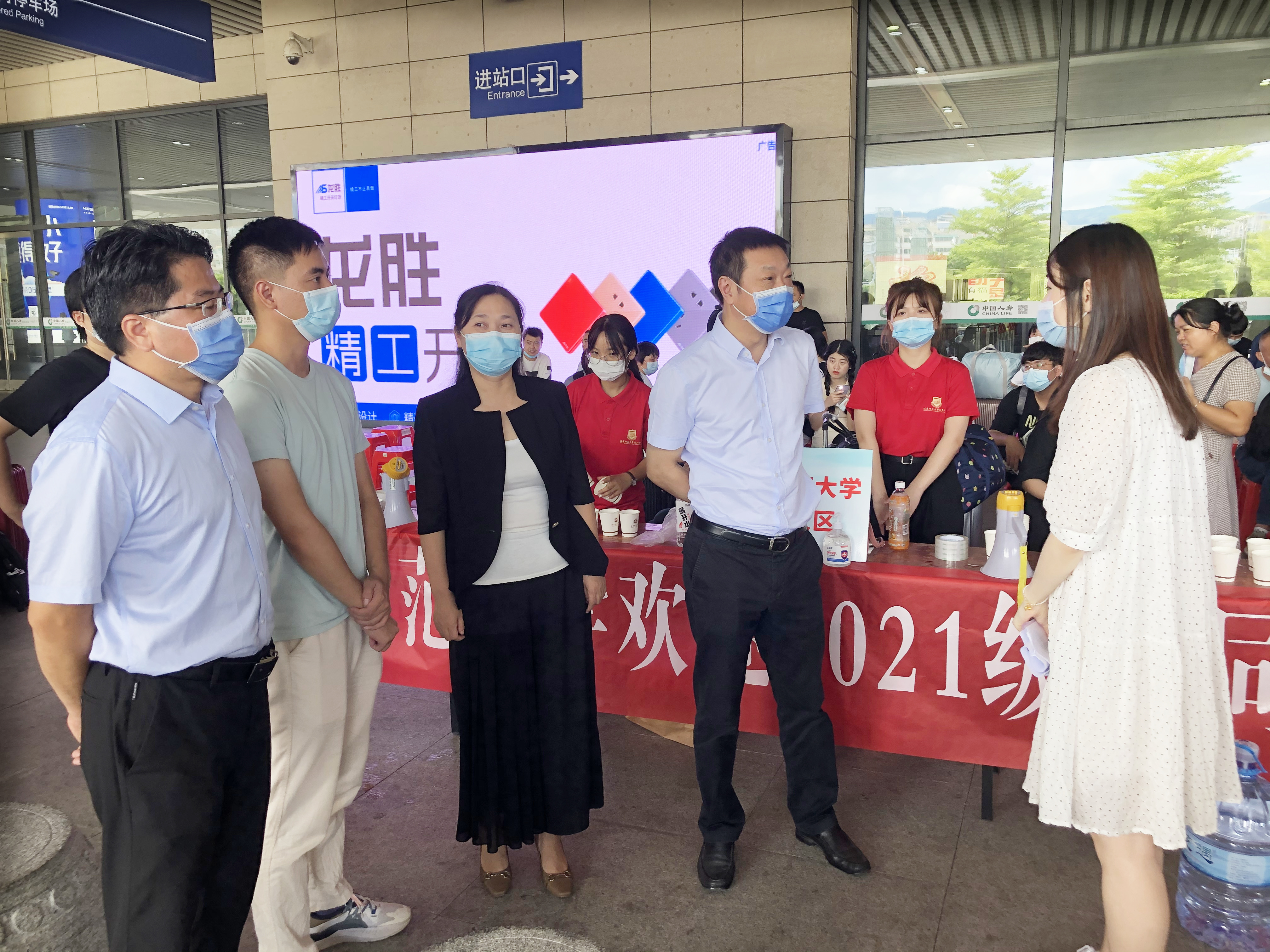 校领导李宝银、王长平、李绚、涂荣到迎新现场,亲切看望来校报到的新生和参加迎新的工作人员、志愿者。校领导详细了解迎新工作情况,代表学校对各部门、各学院(部)的辛勤付出表示感谢,对各学院(部)特色纷呈的迎新工作给予充分肯定。校领导希望大家密切配合、通力合作,为新生提供优质热情的服务保障,帮助新生顺利完成报到,开启人生新征程,同时鼓励新生尽快适应校园生活,潜心学习、健康成长。