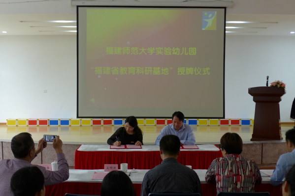 仪式上,福建省教育科学研究所与实验幼儿园签订了合作协议书,并举行了授牌仪式。授牌仪式结束后,与会嘉宾还就幼儿园科学管理、园本课程建设等主题进行了交流研讨。
