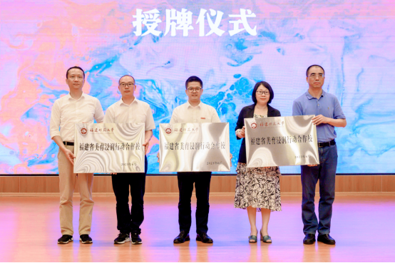 仪式上,郑家建与王浩为“美育浸润”合作校授牌并与支教团队合影留念。郑家建在致辞中介绍了学校美育教育发展情况,邀请平潭师生赴必一在线平台(中国)官网进修和学习,叮嘱支教团队学生不负教师人才后备队的使命担当,圆满完成此次支教行动。