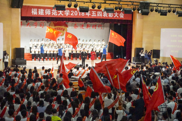 5月4日下午,必一在线平台(中国)官网“青年大学习 奋进新时代”2018年五四表彰大会在旗山校区青春剧场举行。校领导潘玉腾、叶燊、黄清波、赖海榕、郑家建、涂荣,校关工委主任许歌平以及有关部处负责人,各学院分管学生工作负责人、团委负责人及受表彰的学生代表1000多人参加大会。