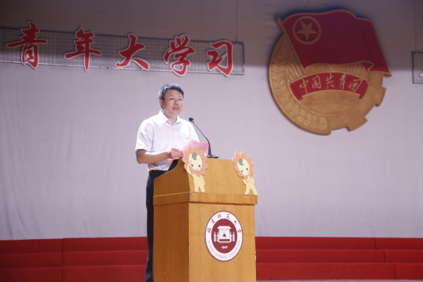 表彰大会在全场高唱国歌中拉开帷幕。潘玉腾在致辞中代表学校向全校广大共青团干部和青年朋友致以亲切问候,向长期以来支持青年事业的同志们表示衷心感谢,向获奖组织和个人表示热烈祝贺。他指出,过去一年学校共青团围绕中心工作,坚持思想引领、唱响主旋律,坚持固本强基、强化主阵地,坚持围绕中心、当好主力军,坚持改革创新、打好主动仗,在推动共青团改革、网络新媒体、校园文化、创新创业、大学生素质拓展和服务社会等方面做了大量积极有益的工作,为青年学生成长成才、为学校高水平大学建设做出了积极贡献。站在新时代,他向全校青年学生提了四点期望:一是要在坚守初心中守正创新;二是要在历史传承中矢志创新;三是要在回归本位中改革创新;四是要在围绕中心中同频创新。