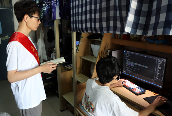 914日线上课程开始以来,同学们积极投入线上学习。学习巡查队多举措推动新生更快适应线上学习,并且督查所有同学线上学习成效,倡导同学们认真进行线上学习,上好网课,坚持“宿舍就是课堂”,保证线上线下学习同质等效。