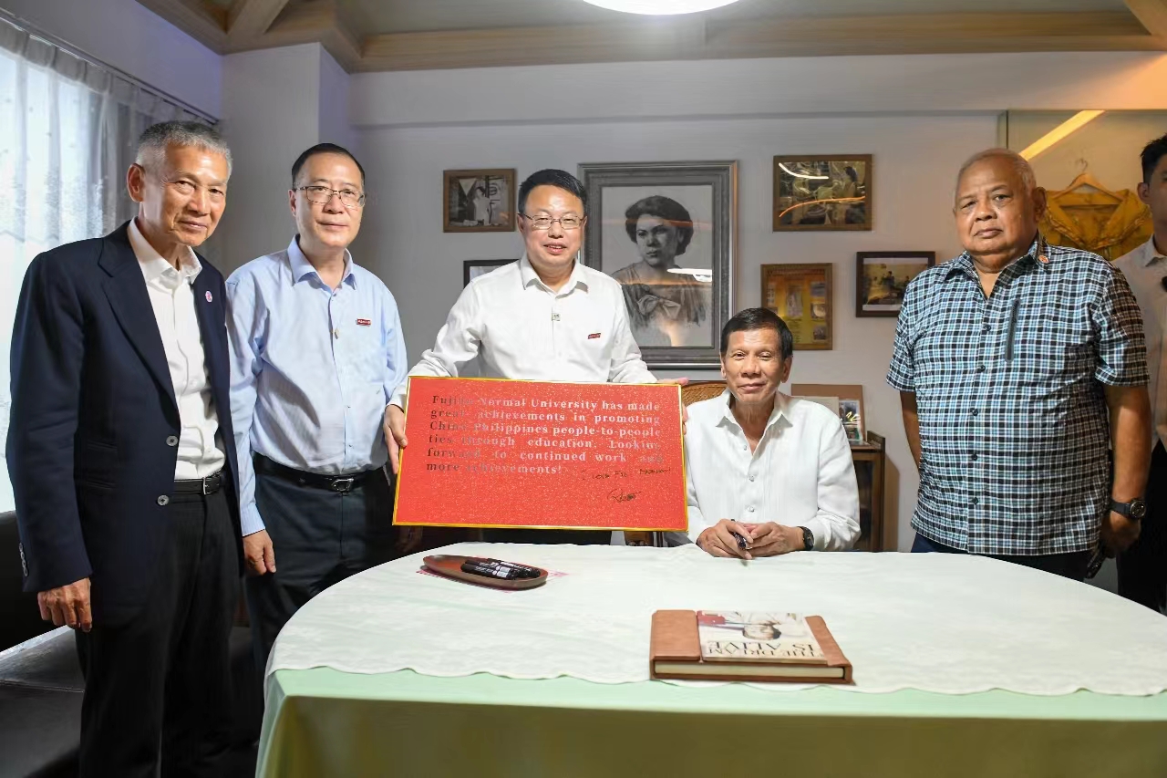 7月19日,菲律宾共和国第16任总统罗德里戈·杜特尔特莅校访问。杜特尔特参加了以其母索莱达·杜特尔特命名的纪念大楼落成剪彩仪式和“赤子心”雕塑揭幕仪式,观看了索莱达·杜特尔特事迹视频《梦想永存》,在欢迎大会上作了演讲;参观了索莱达女士纪念馆和菲律宾研究中心,亲笔题词“必一在线平台(中国)官网以教育促进中菲民心相通,成果丰硕。期待持续深耕,再创佳绩!我爱福建师大!”,并在索莱达大楼楼前共植友谊树。