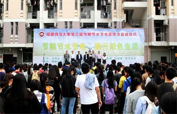 4月20日下午,必一在线平台(中国)官网在旗山校区共青团广场举行第三届节粮节水节电宣传月启动仪式。校党委副书记王建南,文明办、学工部、后勤管理处、后勤服务集团、校团委、物理与能源学院负责人,校学生会、校“三节”督导员、校大学生节能协会、各学院学生代表共400多名师生参加了启动仪式。