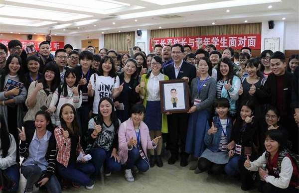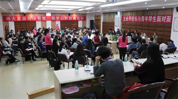 活动于4月13日下午在旗山校区第九会议室举行,由校学生会主办。王长平校长带领学校办公室、宣传部、学工部、研工部、保卫处、教务处、财务处、后勤服务集团、基建处、校团委、图书馆、体科院等有关单位负责人,与从微博微信平台报名的同学中随机抽取的120名同学围坐一堂,共话校园事,共议学校发展。活动由校学生会主席黄敏同学主持。