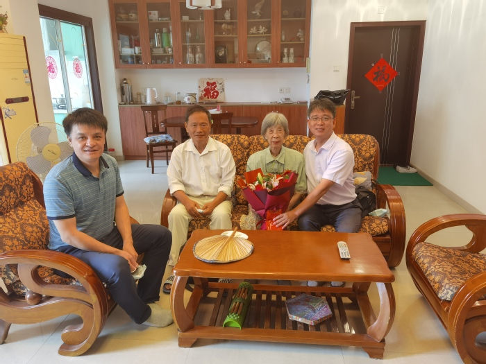 金风送爽,丹桂飘香。在“九九重阳节”来临之际,体育科学学院深入开展重阳节尊老敬老活动,传承和弘扬中华民族传统美德。学院党委书记陈振祯、院长方千华、院党委副书记兼纪委书记钟晓波、院退休教师支部书记陈俊钦等一行走访慰问退休老同志,送去学院的温暖和祝福。