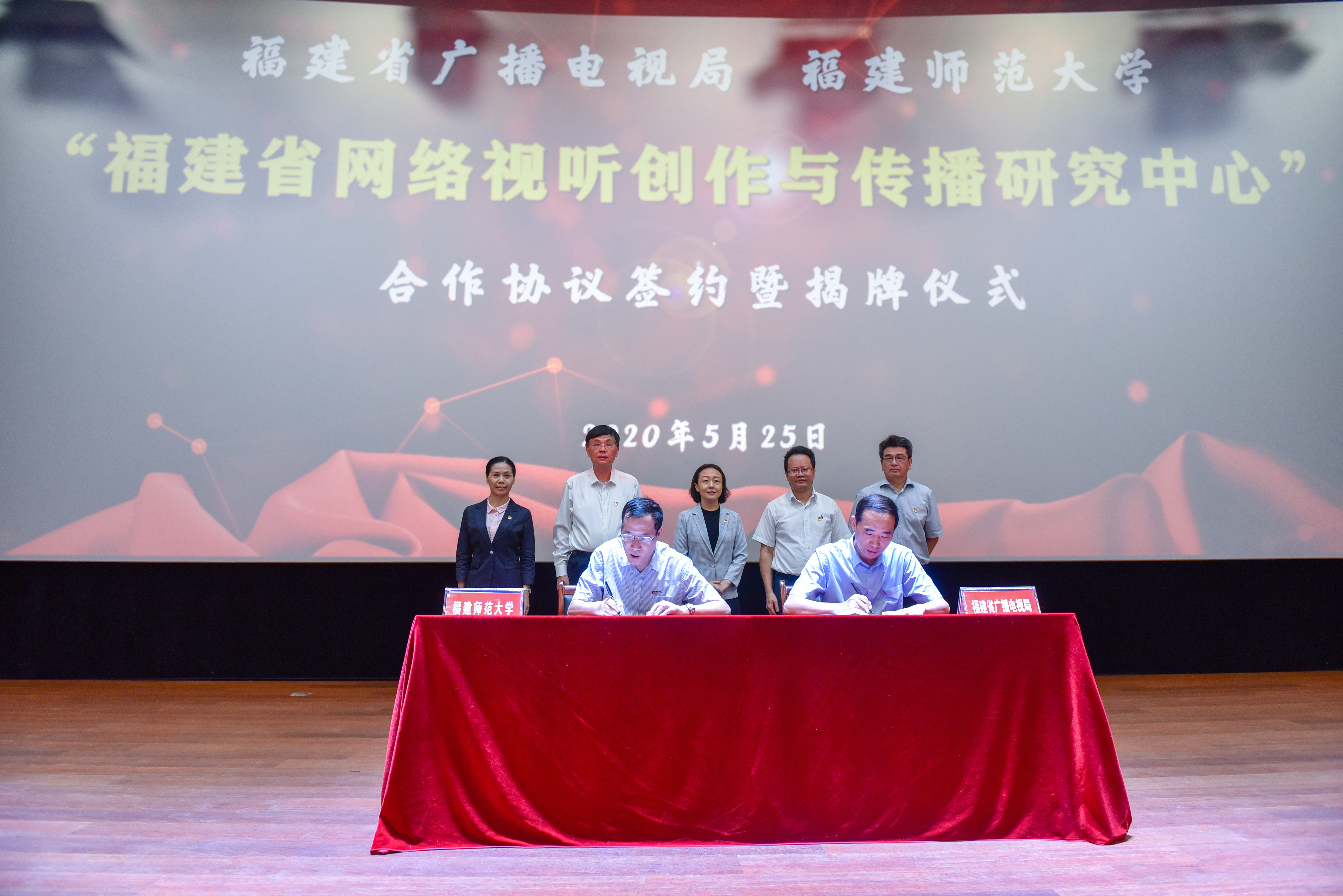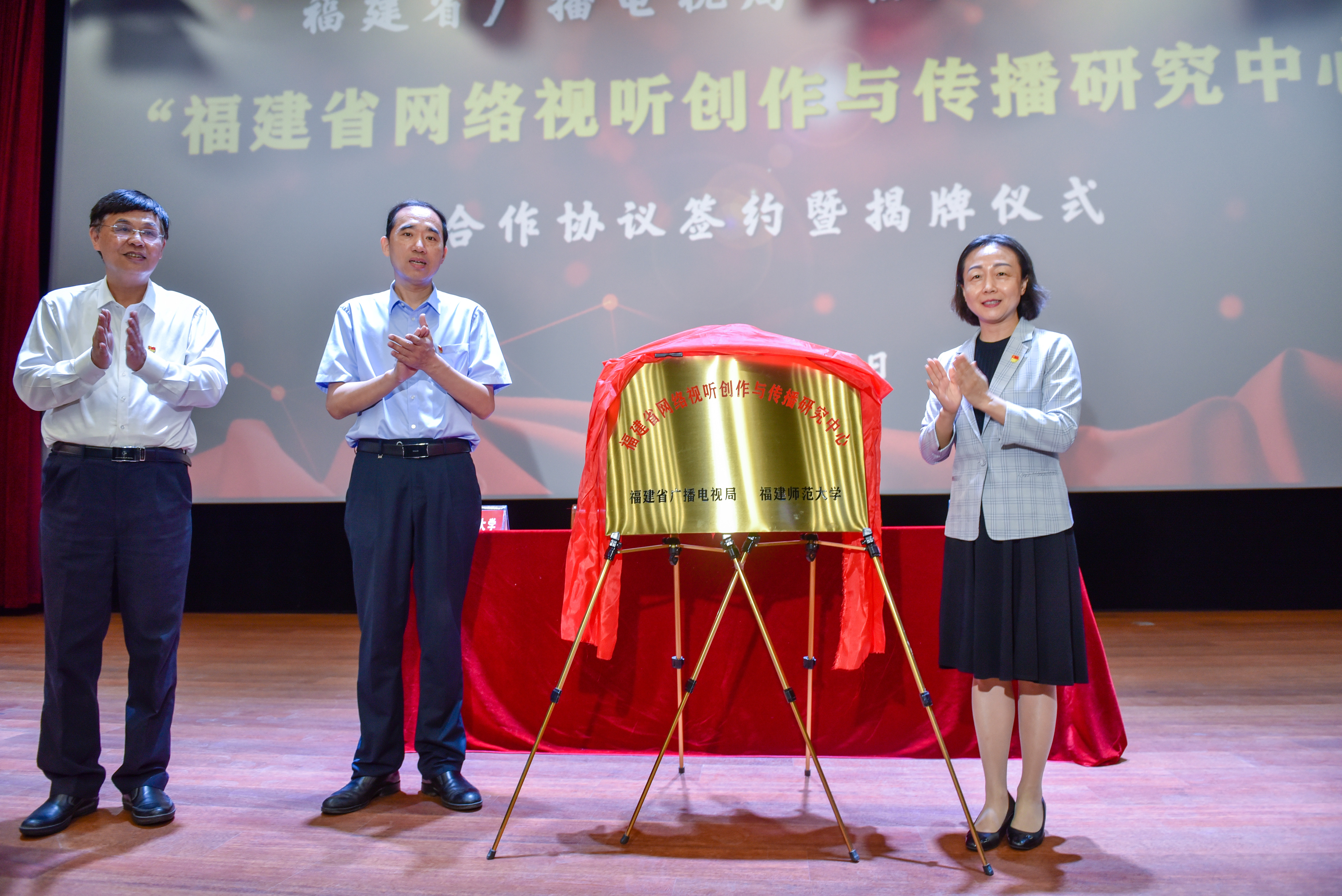 5月25日,福建省广播电视局与必一在线平台(中国)官网共建“福建省网络视听创作与传播研究中心”签约暨揭牌仪式在学校星雨剧场举行。副省长郭宁宁出席活动并为研究中心揭牌。