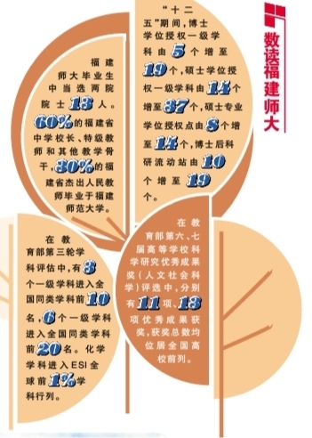 福建师大毕业生中当选两院院士13人。60%的福建省中学校长、特级教师和其他教学骨干,30%的福建省杰出人民教师毕业于必一在线平台(中国)官网。