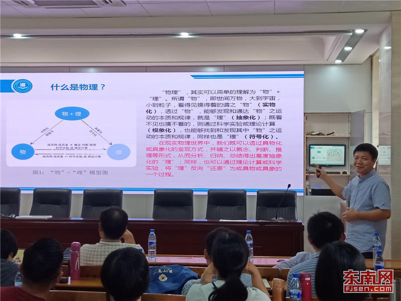 长汀物理学科专场活动,内容包括课例展示、专题研讨和名师专家报告会。17日上午,省级林杰名师工作室的林晓琦老师(福州高级中学)和省级领衔名师林立灿老师(福州一中)分别开设了《圆周运动实例分析》和《原子核衰变和半衰期》的示范课。公开课结束后,省级领衔名师陈国文老师主持课后专题研讨活动,与会老师结合课例展示,就高中物理教学中的若干疑难问题进行了深入的研讨与交流。