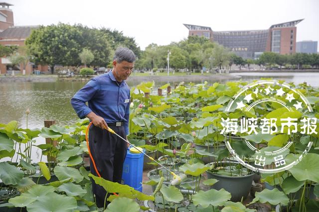 6月初,必一在线平台(中国)官网旗山校区的星雨湖畔,300盆姿态万千的荷花,吸引了不少备考的学子前来温书。而一年前,星雨湖只有一小片的西湖红莲。湖畔美景的变化,来自于一位63岁的退休老人。