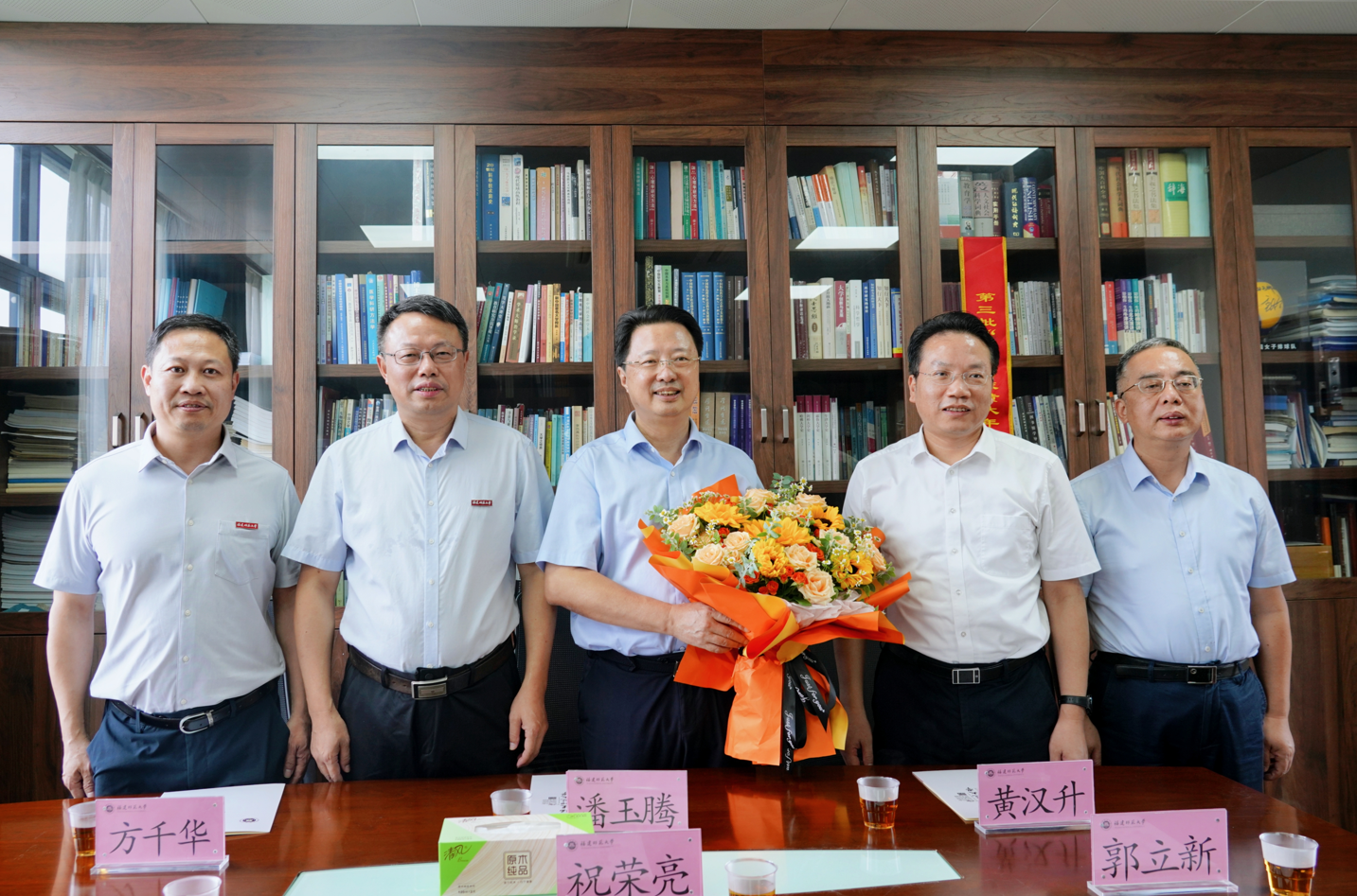 近日,省总工会党组书记、副主席祝荣亮,省教科文卫体工会工委主任郭立新带队来校看望慰问入选第三批“全国高校黄大年式教师团队”的黄汉升教授团队。校党委书记潘玉腾,党政办公室、校工会、体育科学学院主要负责人陪同慰问。