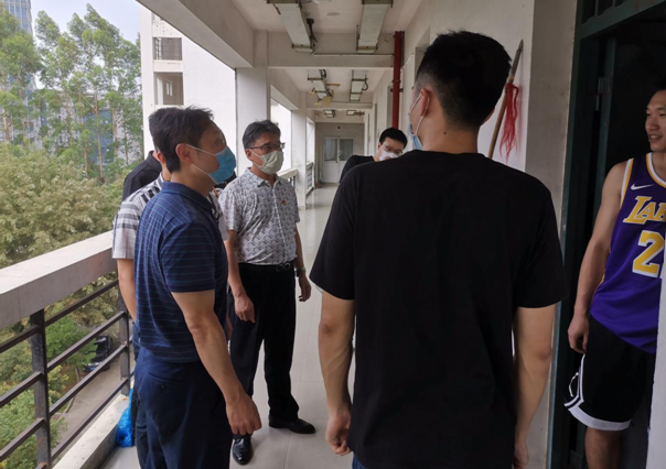 学院领导陈振祯、方千华、钟晓波、蔡辉煌、许文鑫在宿舍楼报到点现场指导,走访返校毕业生,详细了解大家返校后的思想动态、健康状况和服务需求。