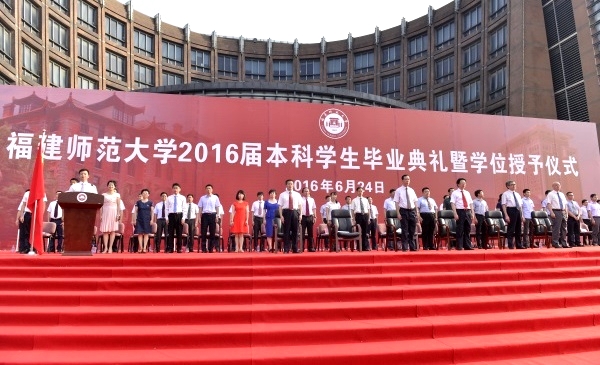 典礼于6月24日上午在旗山校区图书馆前广场隆重举行。校领导黄汉升、王长平、叶燊、汪文顶、许明、凌启淡,机关各部处负责人,各学院党政领导、教师代表、毕业班辅导员,全体2016届本科毕业生,部分毕业生家长等共5000多人参加。典礼仪式由校党委副书记叶燊主持。