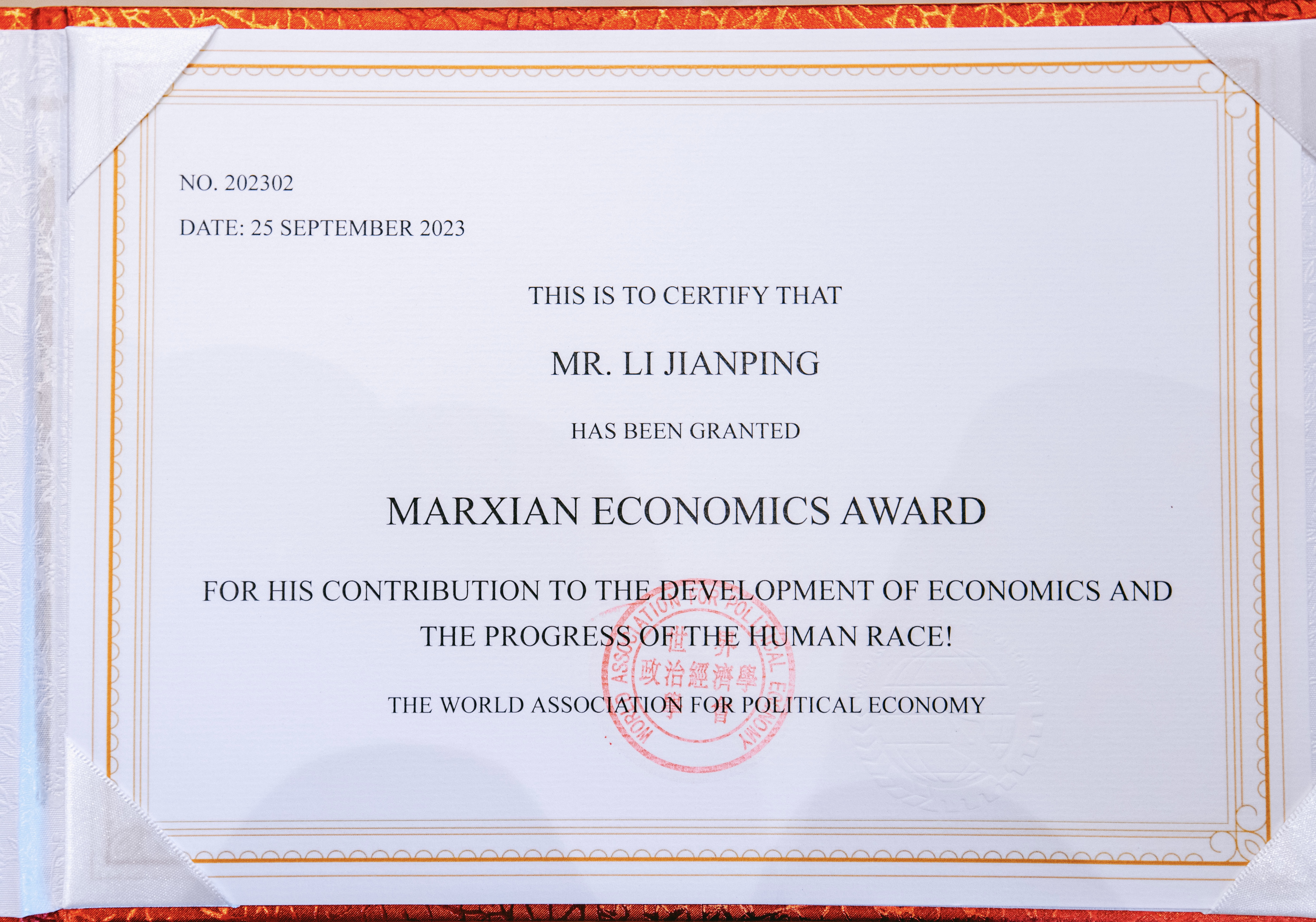 据悉,世界政治经济学学会是开放的非营利性国际学术组织,主要由全球马克思主义经济学者和相关团体自愿结成,自2006年起已相继成功举办了15届论坛,在全球具有较高的知名度和影响力。学会每年颁发“世界马克思经济学奖”和“21世纪世界政治经济学杰出成果奖”,由理事会和全世界马克思主义学者共同投票决定,其中“世界马克思经济学奖”每年仅评出2位获奖者(中国1位、外国1位)。